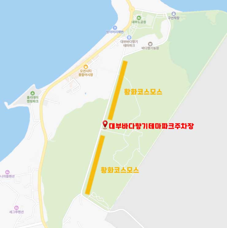 차량주차는 대부도공원 가는 길 대부바다향기테마파크 주차장에 주차하세요
