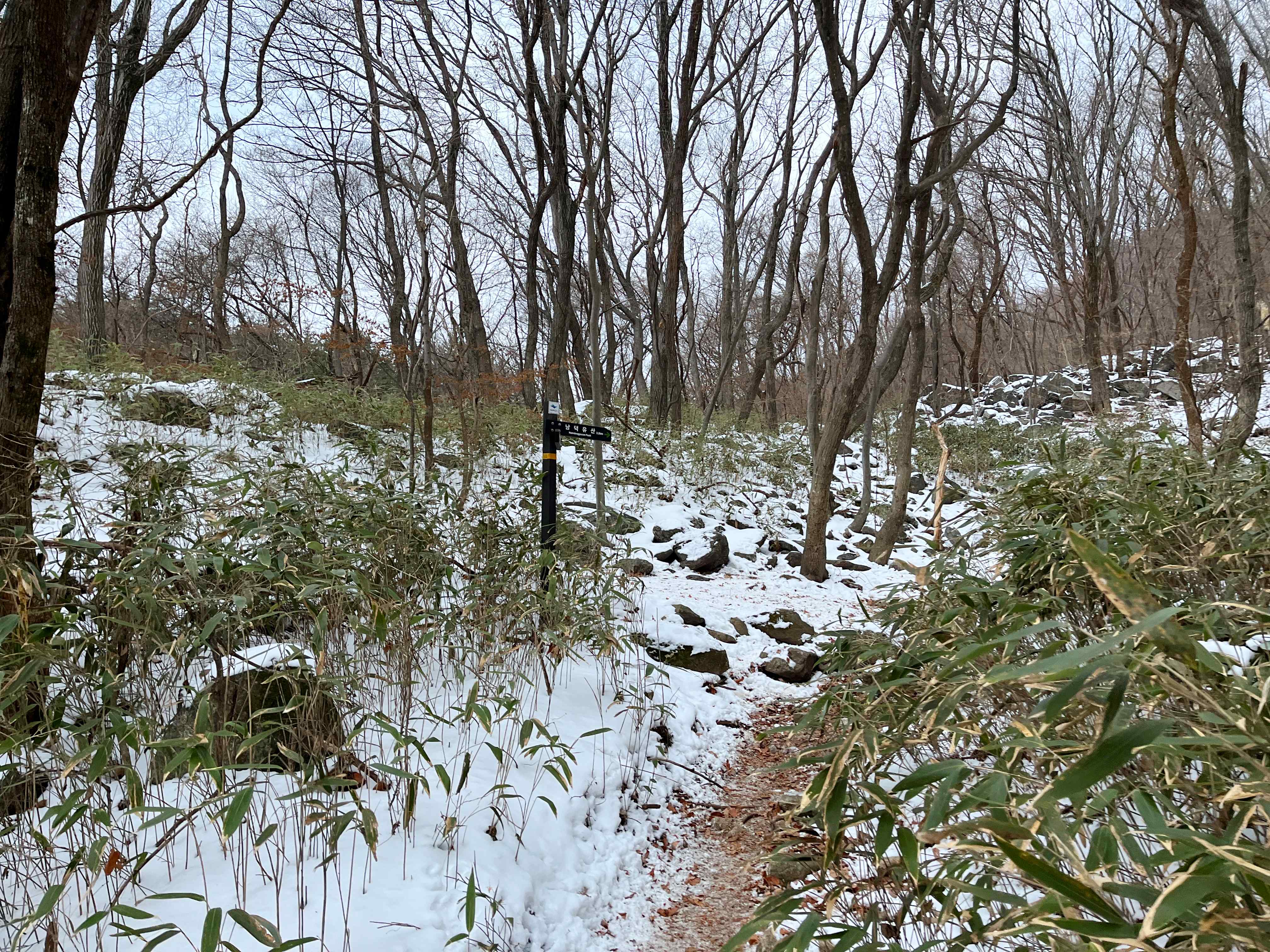 눈이 쌓여 있었지만 길은 분명했고, 아이젠만 착용하면 큰 어려움 없이 걸을 수 있는 상태습니다😉