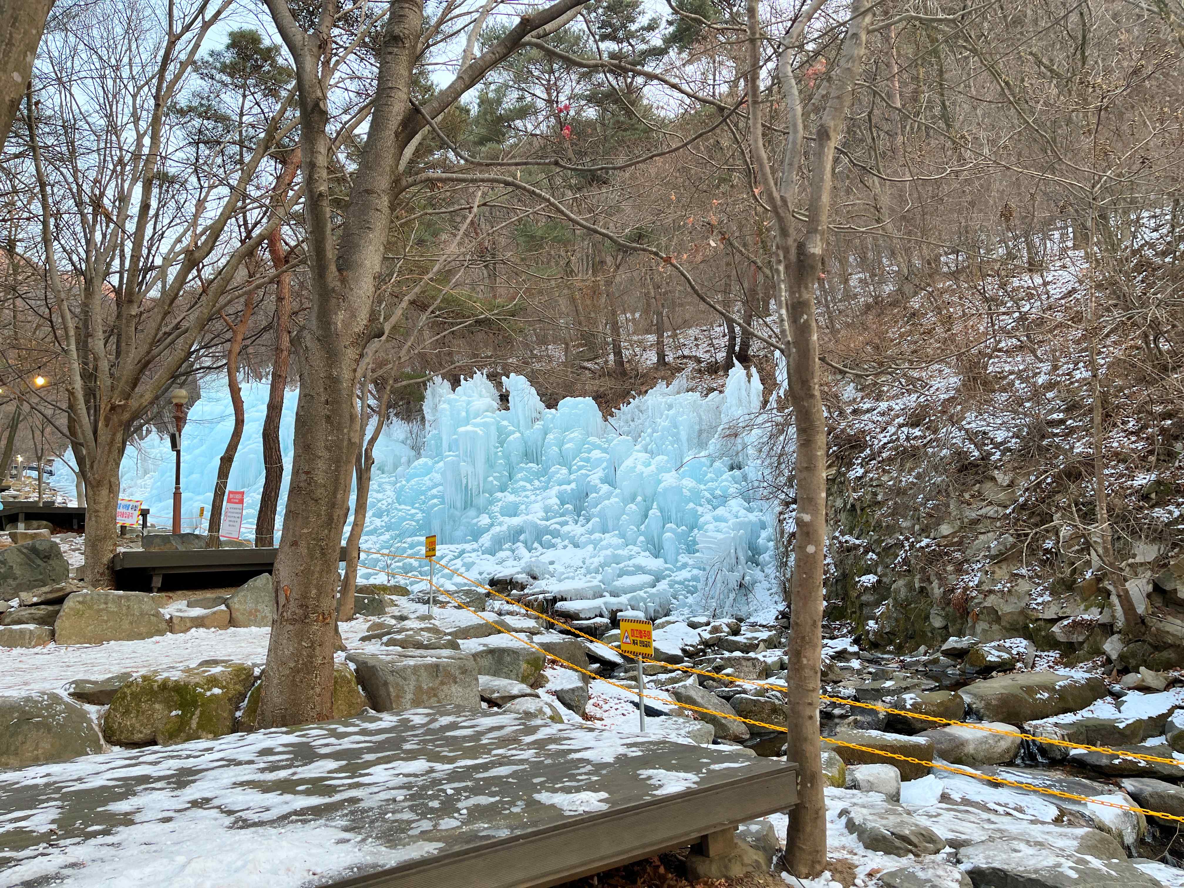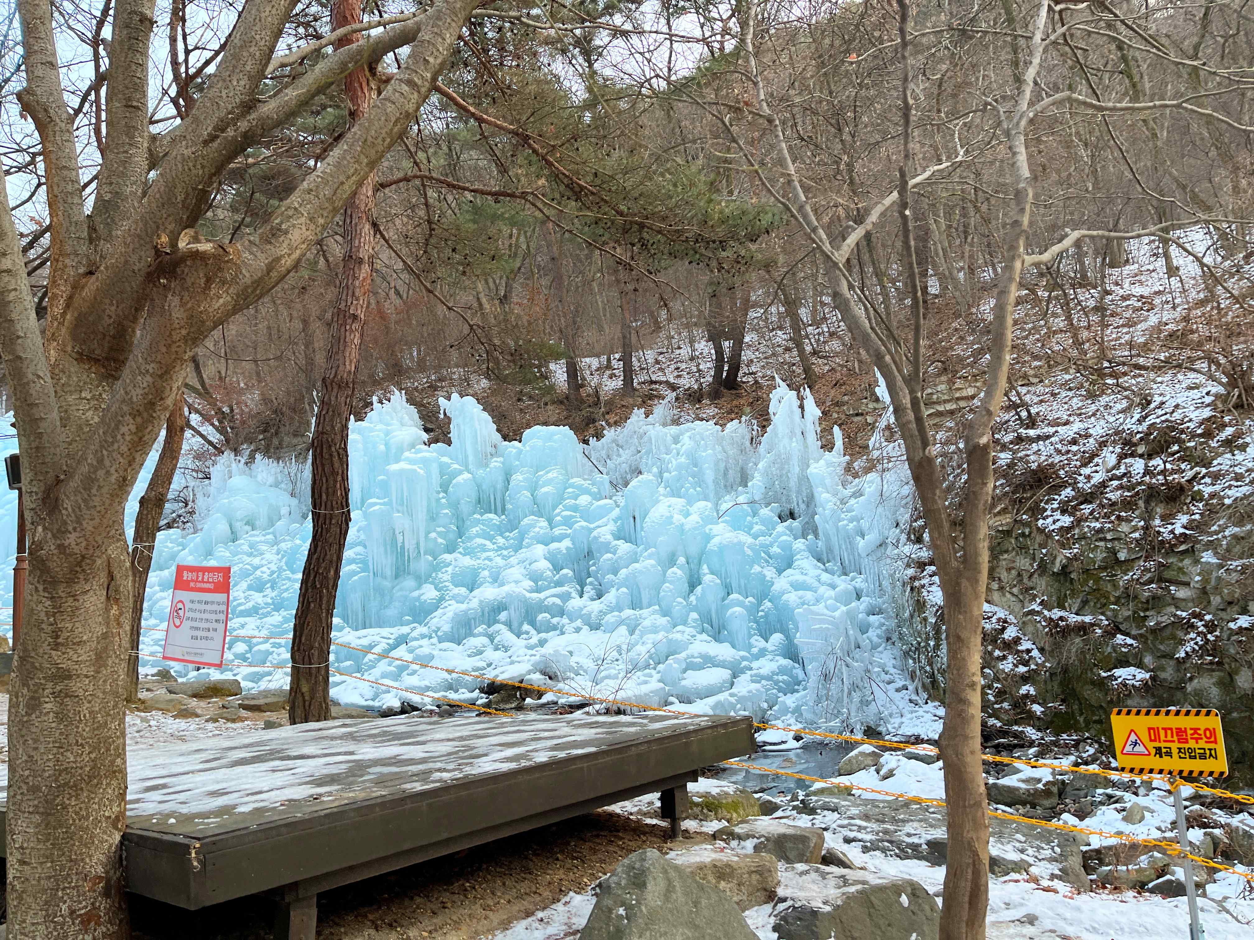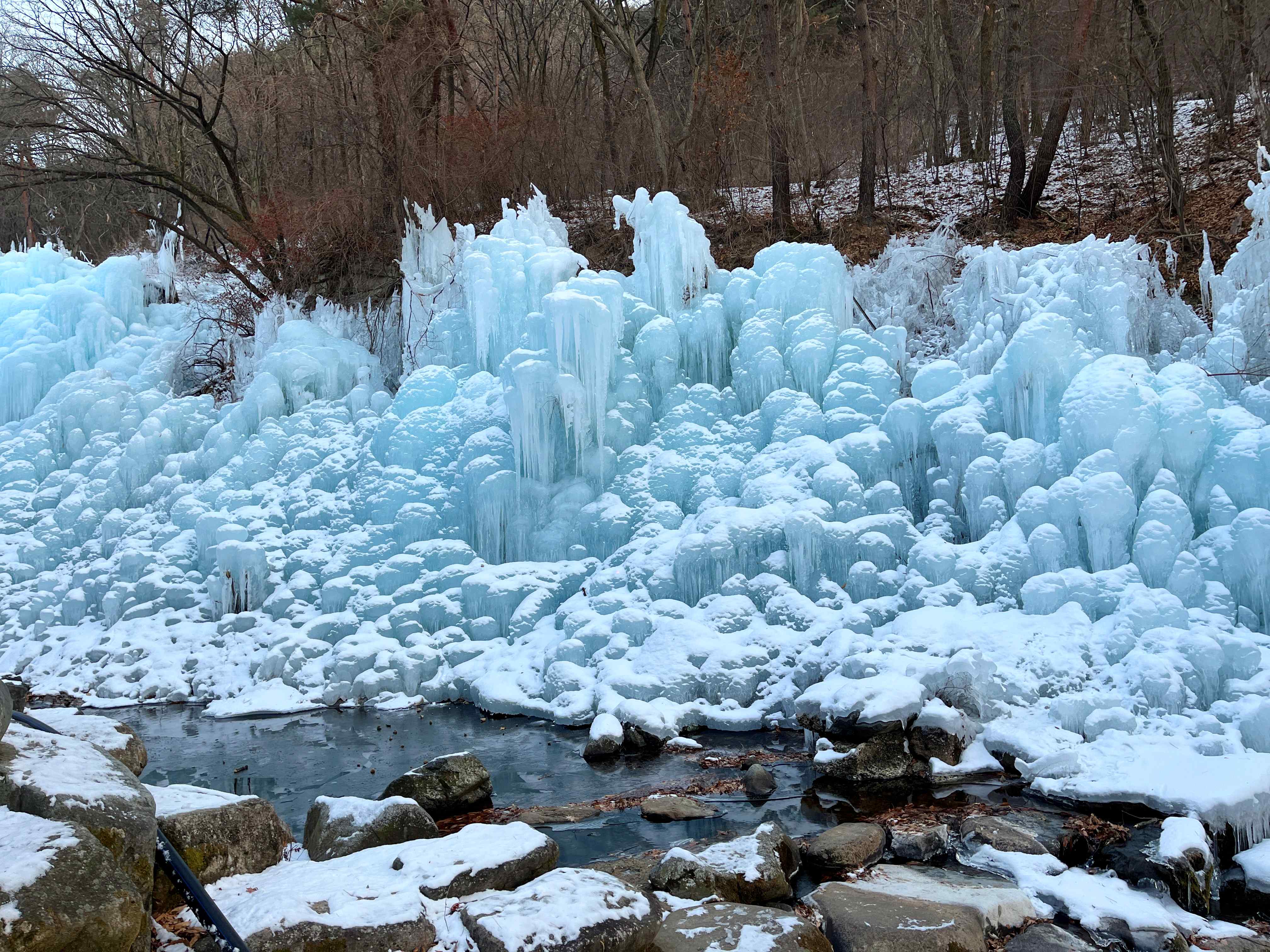 특히 계곡을 따라 형성된 얼음빙벽은 자연이 만들어낸 거대한 조형물처럼 압도적입니다 👍
