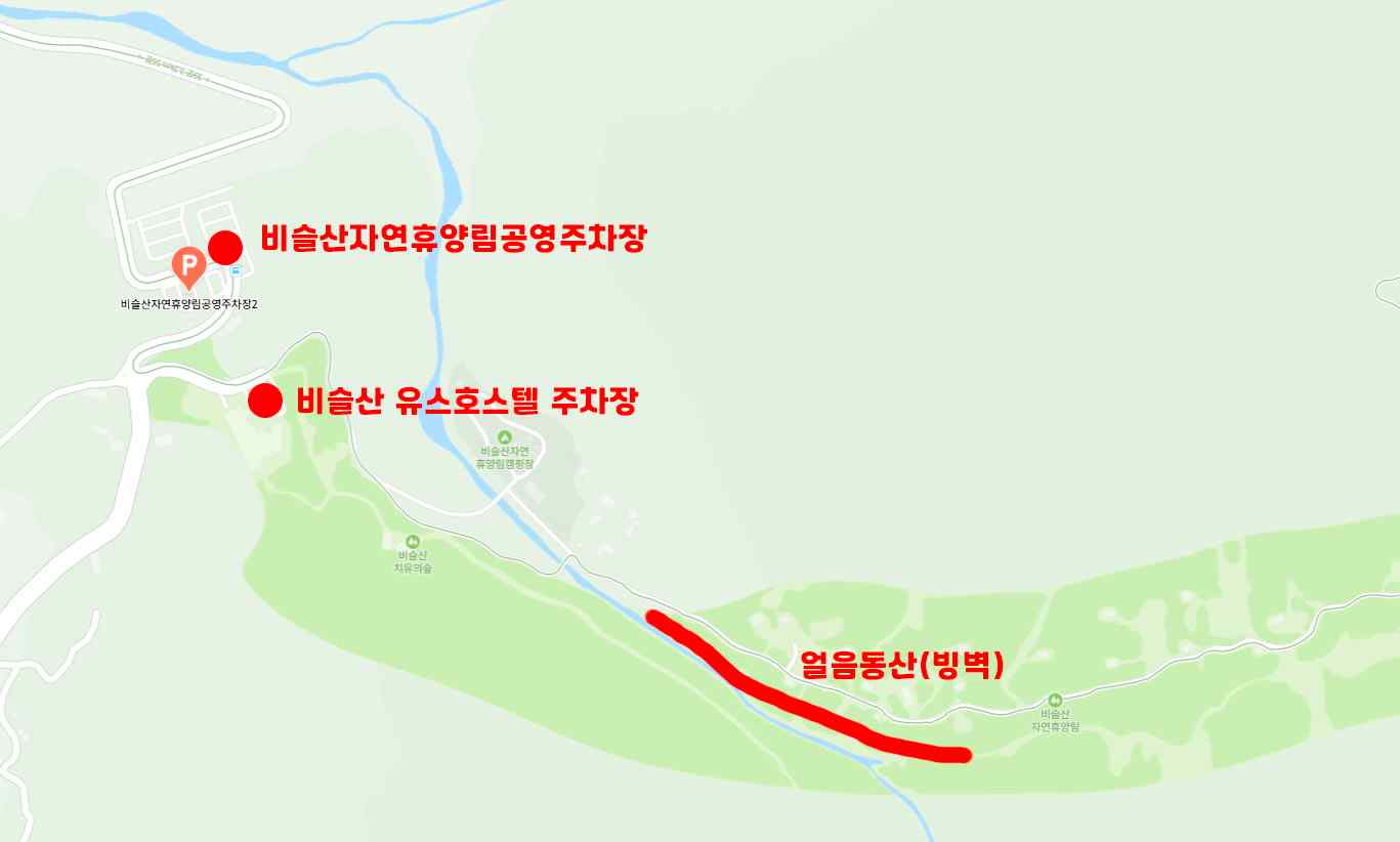 - 비슬산 유스호스텔 주차장(얼음동산과 좀 더 가까움)
