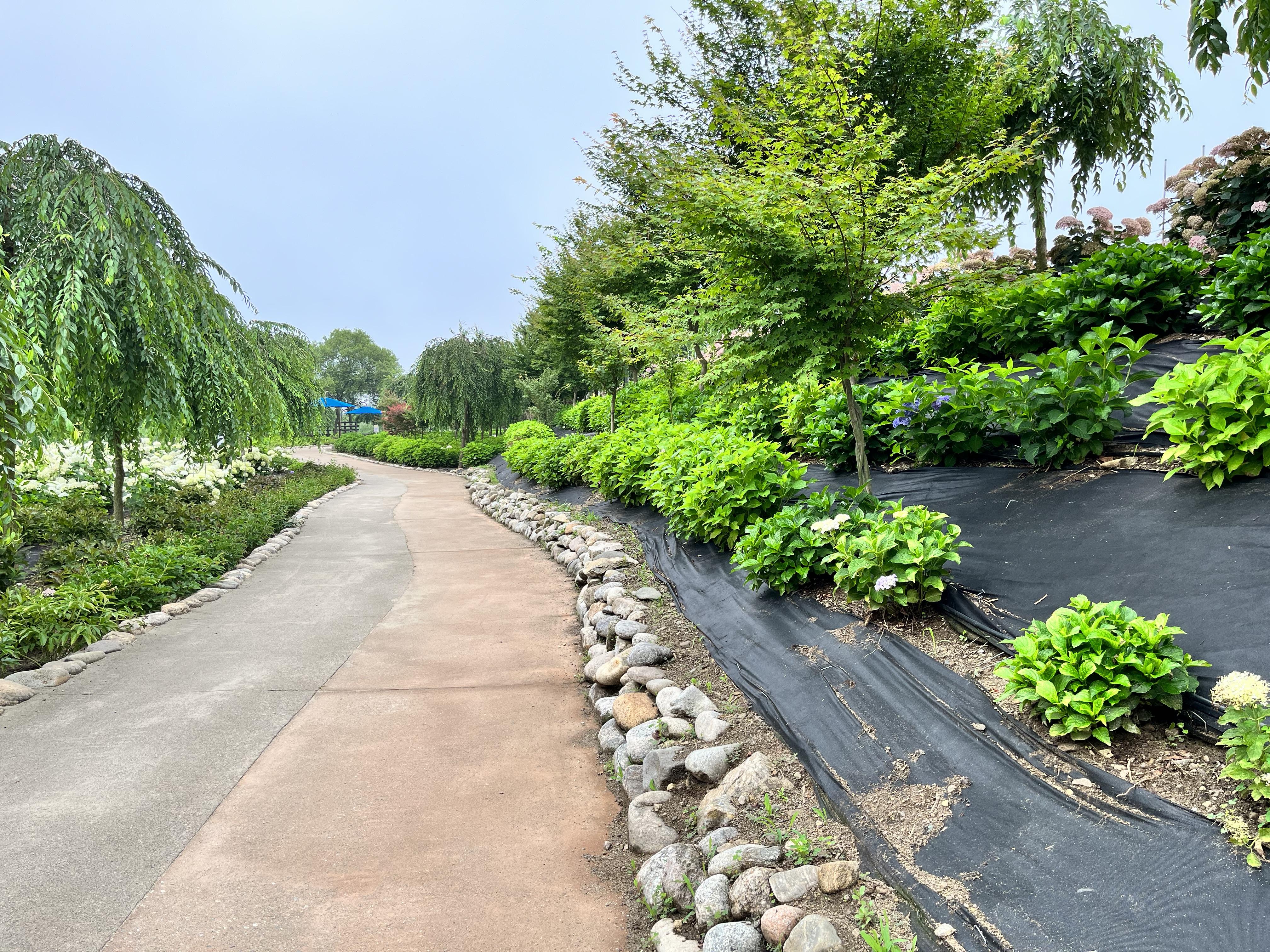 제방 길은 시작부터 공원 끝까지 계속 수국이