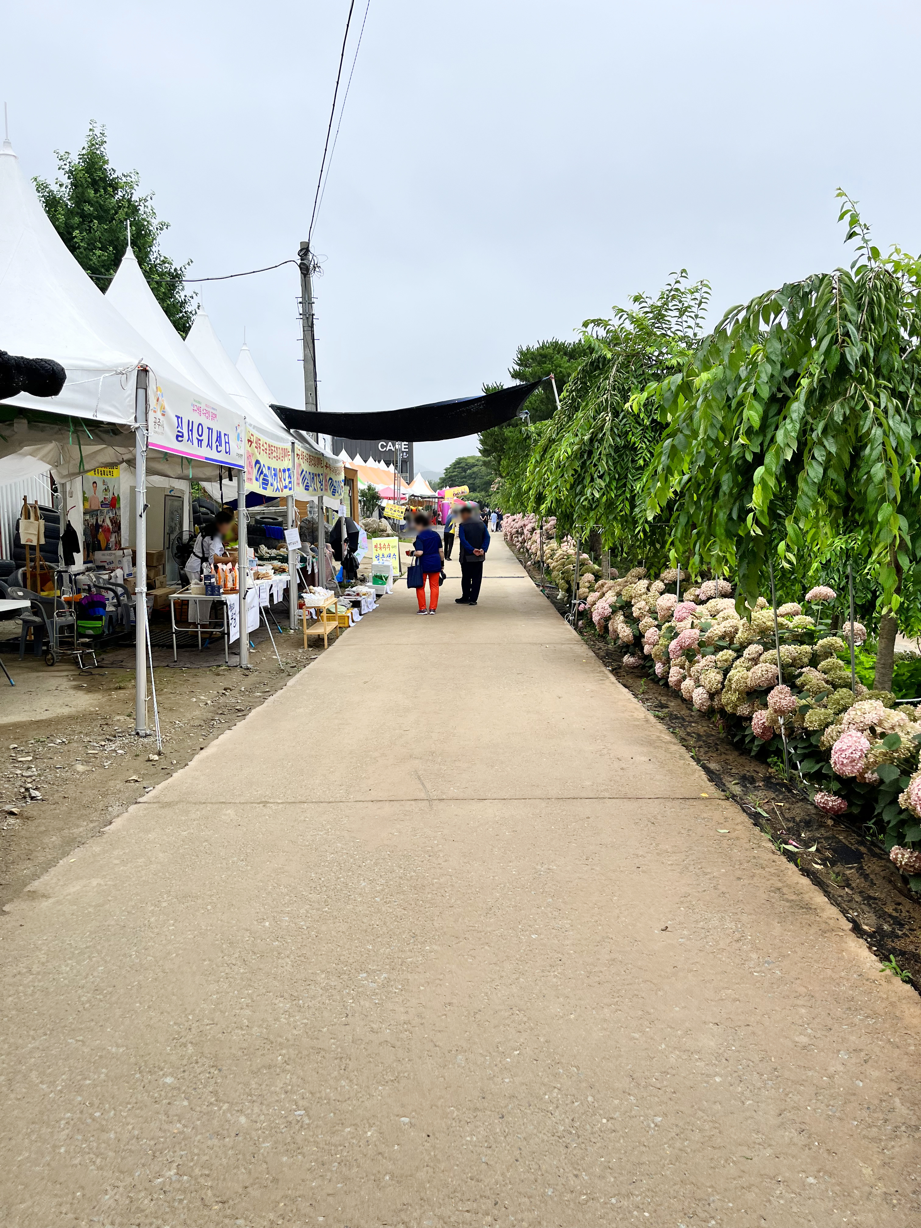 먹거리와 수국을 판매하고 있었습니다.