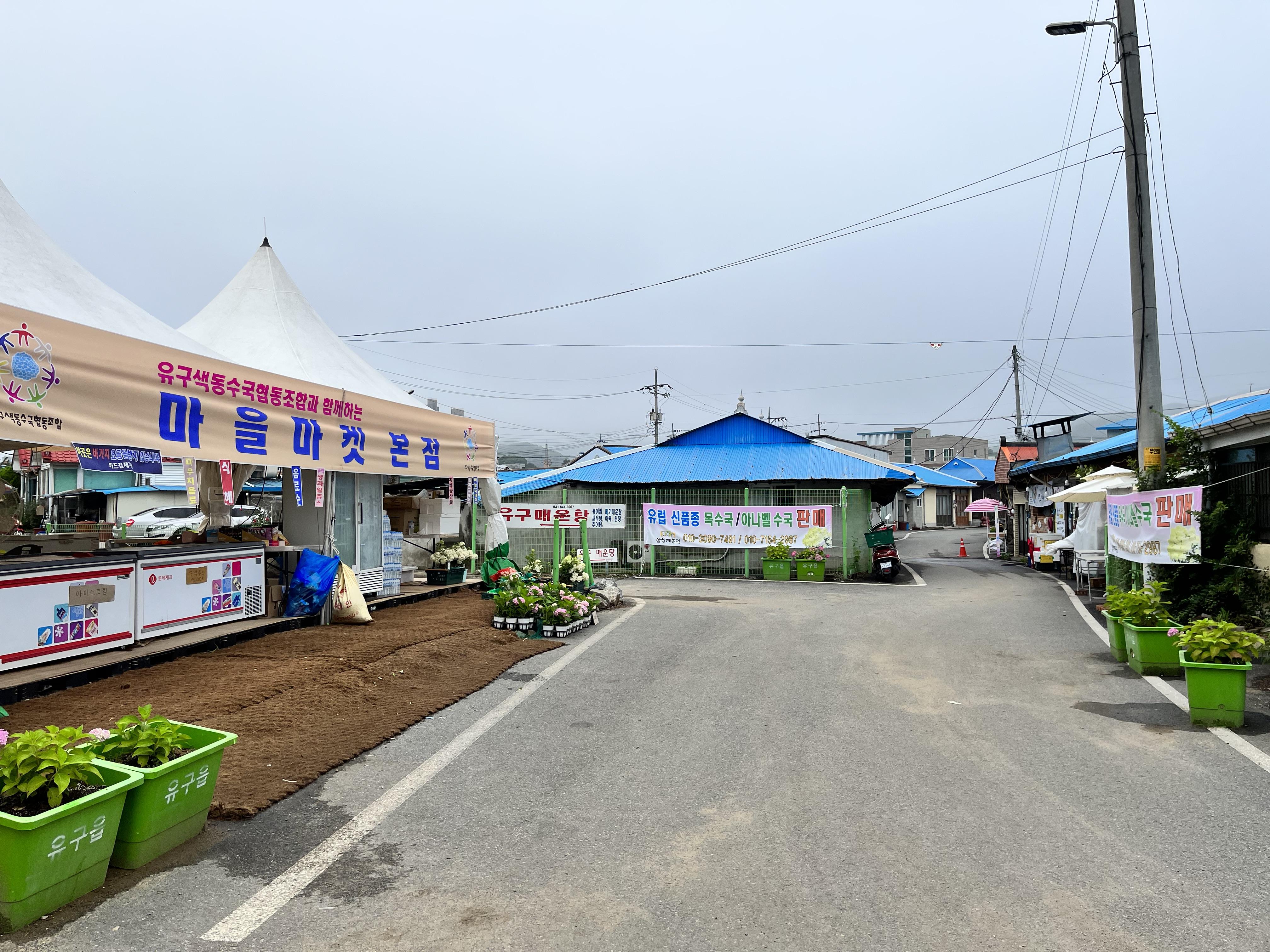 마을마켓에서 수국과 지역특산물을