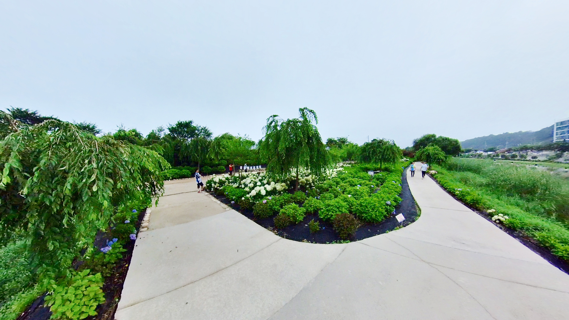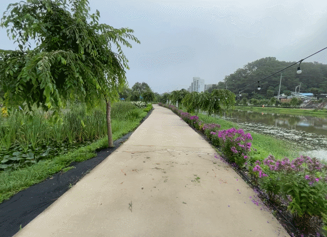 위쪽 제방 길 양옆으로 핀 수국을 보면서 걸었다면