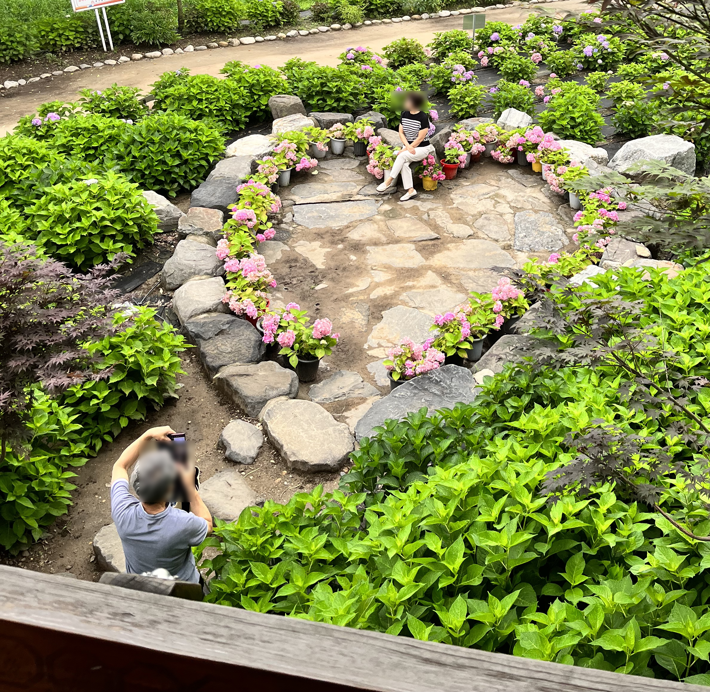 수국 사이로 통로를 만들어서 사이사이 사진 찍기